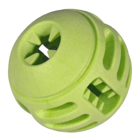 Vadigran TRP Kelluva Aktivointipallo Koiralle 8cm on monikäyttöinen koiran pallo joka viehättää raikkaalla omenan värillään ja tuoksullaan! Tuote on valmistettu kestävästä kumista ja sitä voi käyttää tavan pallona, vesileluna (kelluu) tai herkkupiilona. Siinä on koko pallon läpäisevä aukko, ontto sisus ja monta eri mallista koloa.