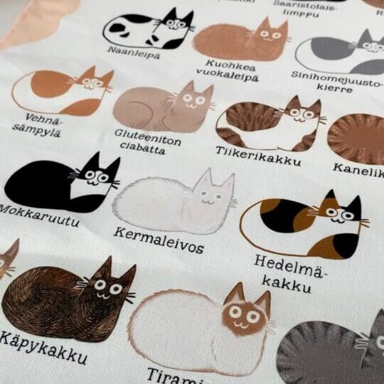 Mustakissa Design Keittiöliina Leipäilevät Kattikaverit 65x44cm