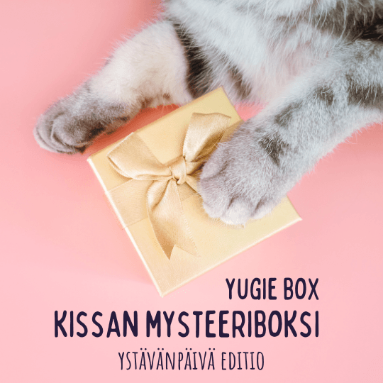 Yugie Box Kissan Mysteeriboksi Ystävänpäivä Editio 2026 on yllätyksellinen lahjaboksi kissoille omistajineen! Se pitää sisällään yrittäjän itsensä valitsemia yllätystuotteita leluista makunystyröitä helliviin tuotteisiin. Mukana mm. paljon sellaista, mitä ei verkkokaupan ja myymälän valikoimasta voi löytää! Tavallisesta Yugie Box Mysteeriboksista poiketen Ystäväboksi sisältää yhden pienen tuotteen myös kissan omistajalle. Avaattehan paketin yhdessä, ettei ihmisen lahjat pääse vääriin tassuihin.